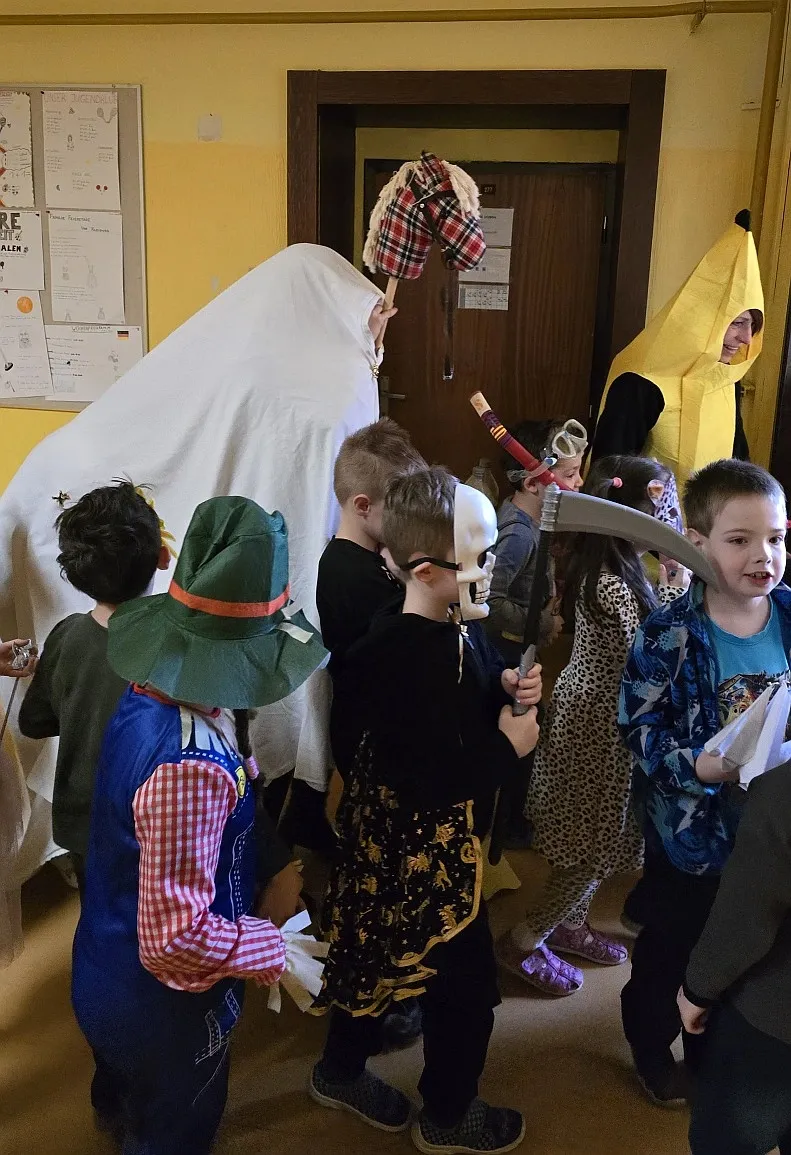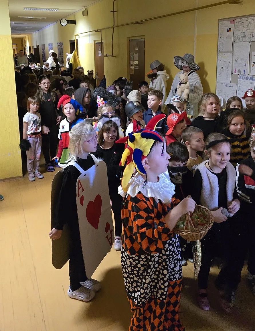 Školou prošel veselý masopustní průvod našich prvňáčků. Nejmladší žáčci se představili v nejrůznějších maskách a k vidění byly i ty tradiční, jako kominík, kobyla nebo smrtka. Za doprovodu akordeonu jsme si mohli všichni společně zazpívat. Všem účastníkům moc děkujeme za skvělé zpestření běžného školního dne.
